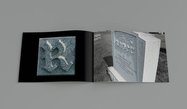 Pour harmoniser l’ensemble, les photos ont été converties en noir et blanc, en ne conservant qu’un seul élément en couleur — généralement la pierre tombale.